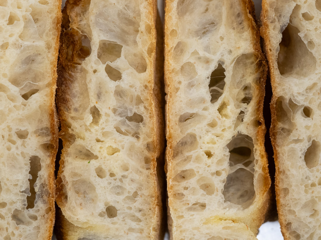 Goldbraun gebackene Focaccia, bestrichen mit Knoblauchbutter, getoppt mit Petersilie und Parmesan